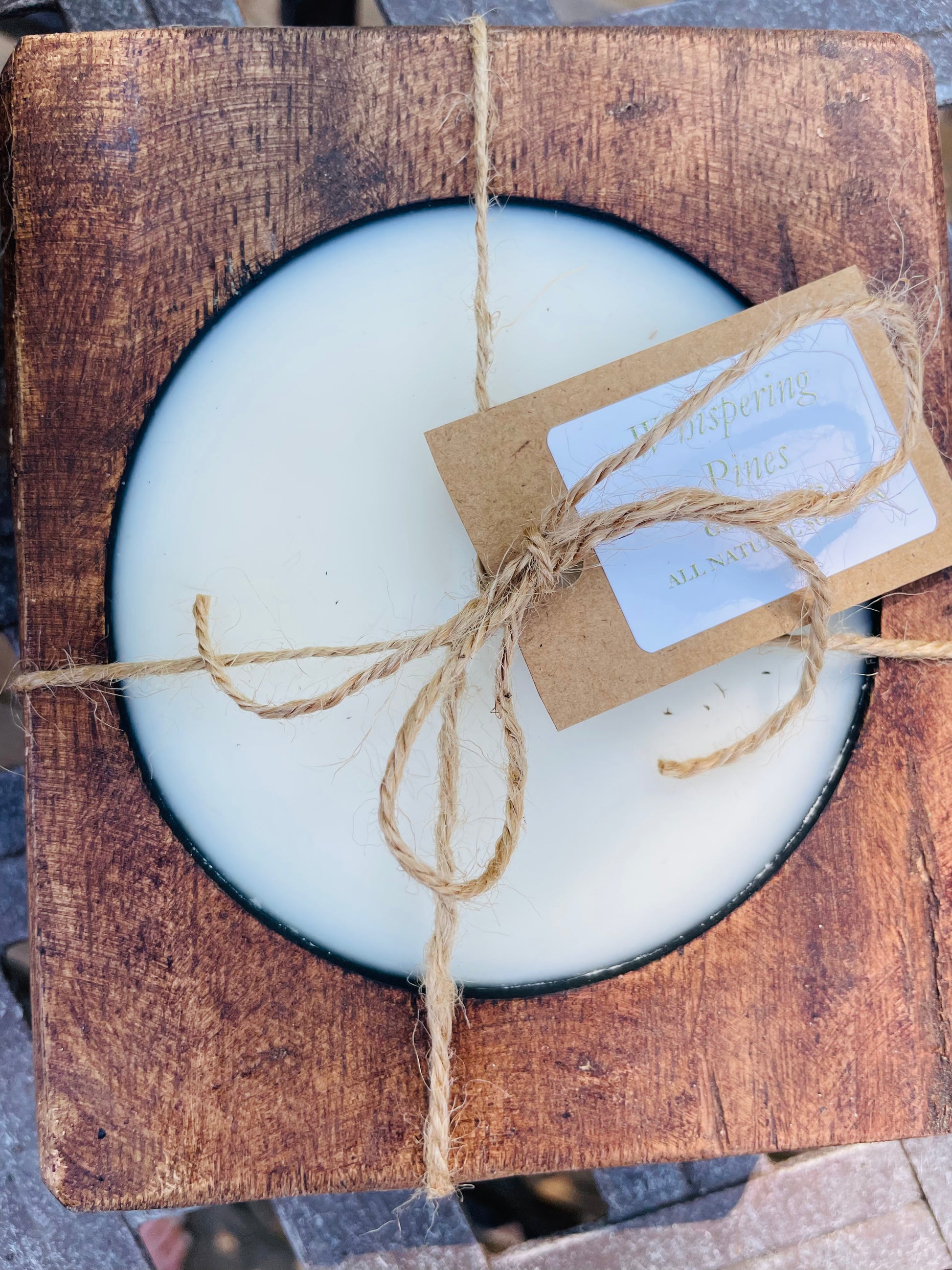Rustic chic candle made with clean quality soy wax. This dough bowl makes a great gift or simple decoration to add to your home!